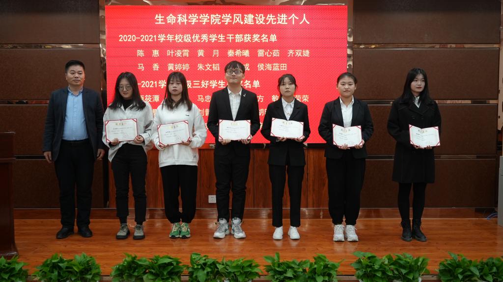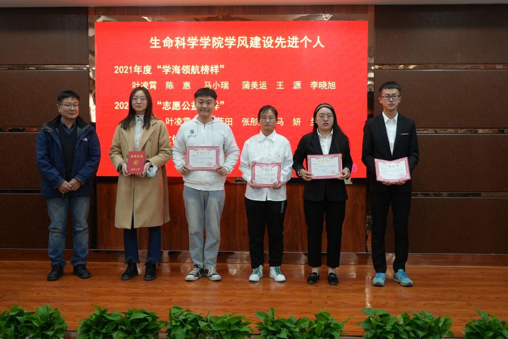 立德树人,培根筑魂。为树立先进典型,表彰先进榜样,2021年12月22日下午,betway必威官方网站2021年度教风学风建设表彰大会在文萃校区知本楼二楼报告厅主会场,云直播分会场隆重举办。学院党委书记李东宁、院长苏建宇、党委副书记何彦平、西部特色生物资源保护与利用教育部重点实验室副主任李敏、副院长周学章,各办公室、系负责人,获奖师生代表在主会场参加会议,其他师生及学生家长应邀通过云直播参加表彰大会。