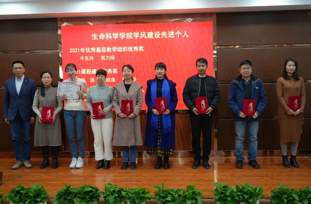 院长苏建宇在讲话中充分肯定了学院广大教职员工围绕立德树人使命,在不同岗位上履职尽责,为学院各项事业发展所做出的突出贡献。他讲到,2021年全院师生共同努力,在人才培养、科学研究、服务地方等方面取得了突出成绩,在课程建设、专业建设、学位点建设、学生创新创业教育等方面取得了丰硕的成果,学院生物学一级学科实力也在不断增强。在软科2021年中国最好学科排名中,学院生物学学科排名全国89位,在西部地区高校中排名第10,排名位次进入全国前40%。在即将到来的2022年,全院师生要继续发扬生命科学学院的优良传统,抢抓机遇、直面挑战、共同努力,振奋工作精神,推进新时期学院各项事业高质量发展。