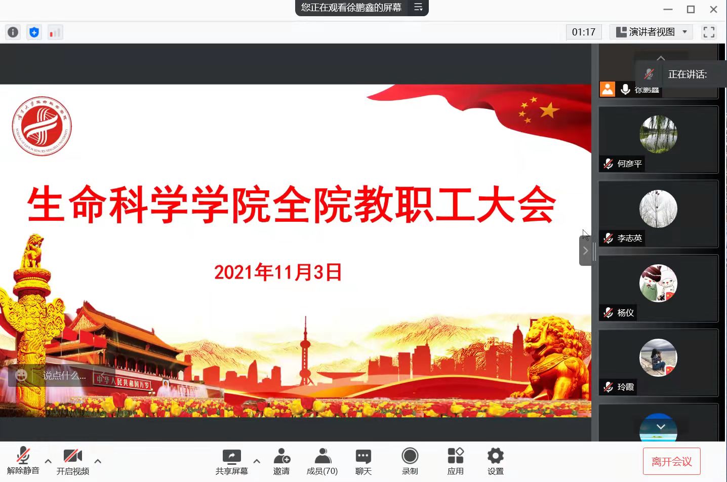 11月3日,betway必威官方网站通过腾讯会议召开线上全院教职工大会,安排部署近期工作,会议由党委书记李东宁主持。