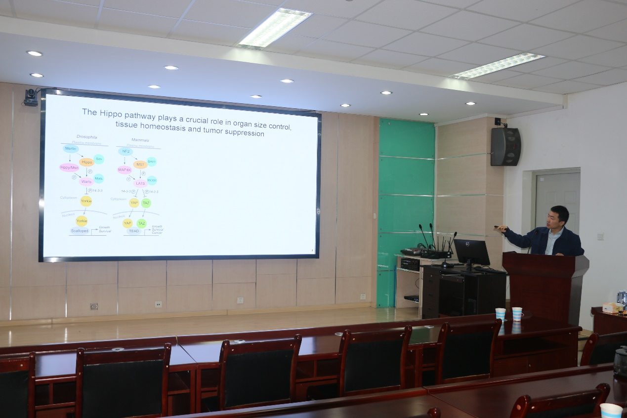 4月21日,生命科学学院邀请武汉大学泰康医学院(基础医学院)的韩翰教授作题为“Defining novel metabolic cues for the Hippo pathway regulation”的学术报告。报告会由学院副院长李乐主持,学院教师、部分研究生参加了此次报告会。