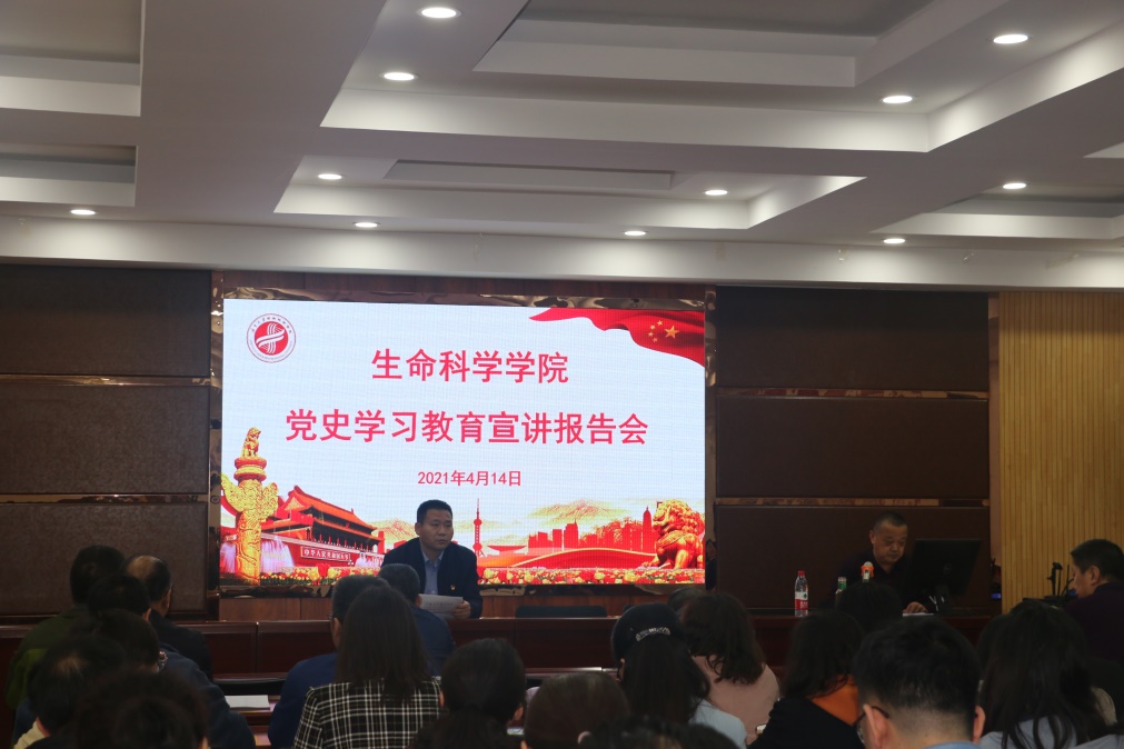 2021年4月14日下午,宁夏大学党史学习教育巡回宣讲组成员刘晞平教授为生命科学学院全体教师及学生党员做了党史学习教育宣讲报告。报告会由学院党委书记王彦庚同志主持。
