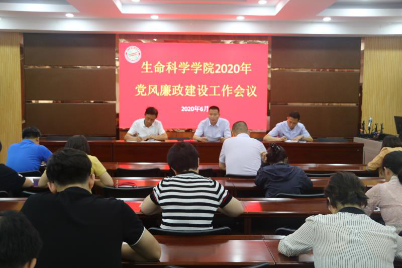 为贯彻落实全面从严治党要求,进一步加强党风廉政建设工作,筑牢全院教职工廉洁自律防线,6月10日下午,在学院二楼报告厅,召开了生命科学学院2020年党风廉政建设工作会议。学院领导班子成员、三办全体工作人员,各支部委员、党员和教工代表30余人参加了会议。