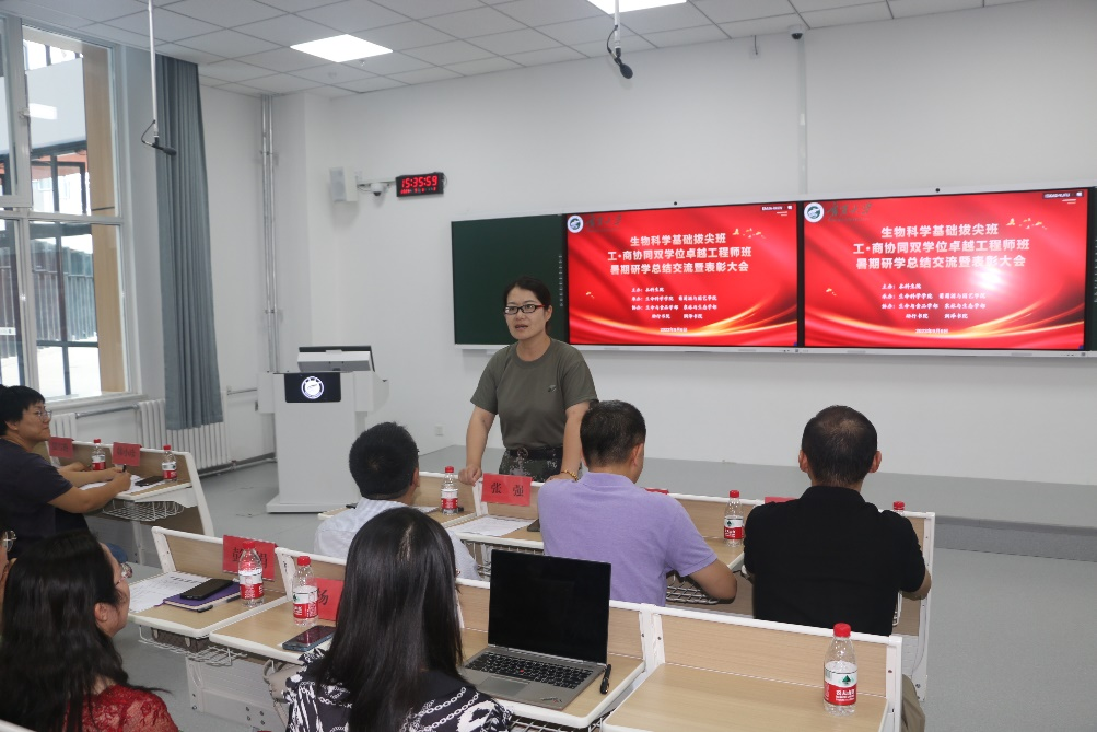2023年9月6日,生物科学基础拔尖班、工•商协同双学位卓越工程师班暑期研学总结交流暨表彰大会在贺兰山校区未来教室109顺利召开。生命与食品学部常务副部长、生命科学学院院长苏建宇,励行书院党委书记、院长张强,润泽书院党委书记、院长马骏,本科生院副院长刘国军,农林与生态学部副部长韩小珍,生命与食品学部副部长徐金瑞,葡萄酒与园艺学院副院长张雪艳,生命科学学院副院长李乐,生物科学(基础拔尖人才培养班)班主任杨易,工·商协同双学位卓越工程师班班主任仉瑞,物理学院教师杨涛、郝睿及化学化工学院教师彭娟出席了本次会议。