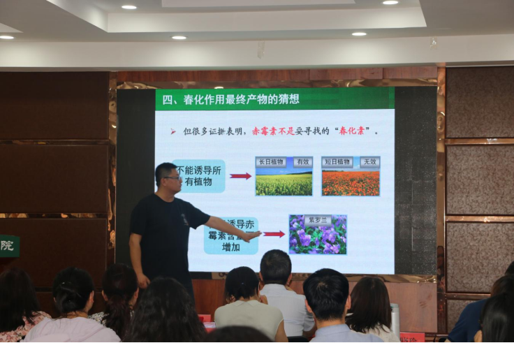 会后,第三届青教赛全国一等奖获得者、农学院王彬教授结合自身参赛经历围绕选定课程节段、教学设计、教学反思、比赛心态等方面为全体教职工做经验分享,并就植物春化作用进行教学示范。大家一致认为,王彬教授的示范课情绪饱满,巧妙运用启发式、案例式教学方法,从课程的导入到课程思政的自然融入,都表现出极高的教师素质。学院将以本次青教赛为契机,持续加强教师队伍建设,营造尊师重教的良好环境,振奋精神、团结进取,不断提升教学水平,为培养德智体美劳全面发展的社会主义建设者和接班人贡献力量。