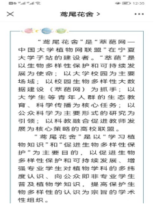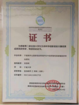 团队成员指导学生积极参与保护生物多样性的相关研究,并多次获得奖励,其中杨涓、郑国琦指导的大创项目“宁夏银北贺兰山东麓林田湖草区土壤盐分与植物分布关系的研究”,获得了全国大学生生命科学竞赛指导教师三等奖(科学探究类,2021.09),郑国琦指导学生作品“宁夏南华山国家级自然保护区中段阴坡和阳坡植被多样性研究”获第二届全国大学生生命科学创新大赛优秀成果奖指导教师三等奖(创新类2019)。牛东玲老师指导的学生社团“鸢尾花舍”是“萃葩网—中国大学植物网联盟”在宁夏大学子站的建设者,将植物多样性保护很好的融入其中,寓教于乐,深受学生喜爱。