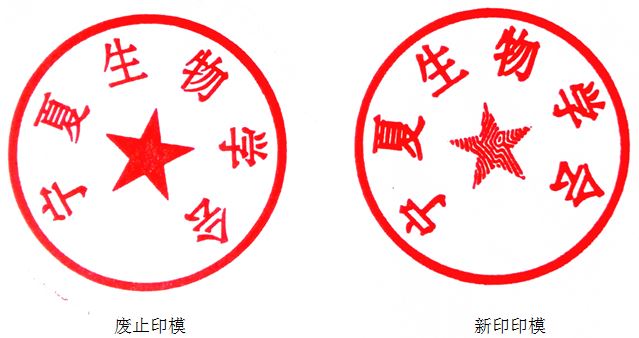 根据工作需要,即日启用“宁夏生物学会”新印章(ΦO=42mm),旧印章同时废止。